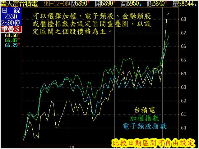 | 靈頓指標 | 區間大盤、類股與個股重疊圖(以價格繪製) | 三關價 | 區間大盤、類股與個股重疊圖(以漲跌幅度繪製) |