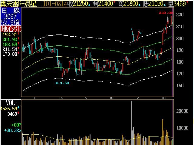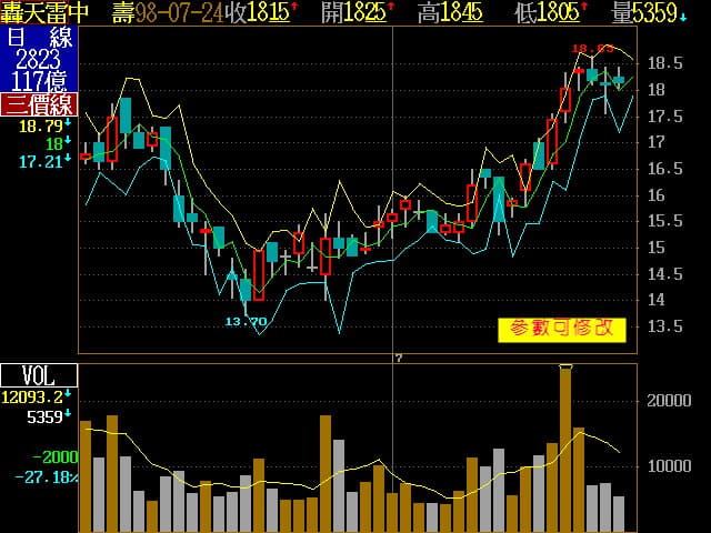 | 三價線 | 高低平均價指標(H/L) | 紅黑線(紅買綠賣) | 漲幅% |