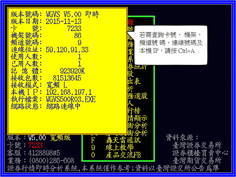 若需查詢卡號、 機架、頻道號碼、連線號碼及本機 IP,請按