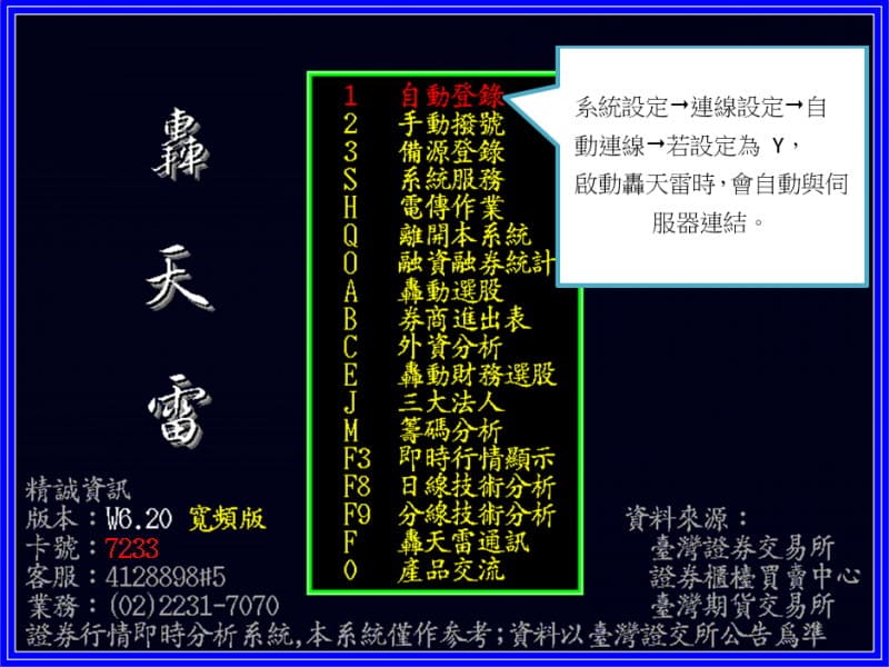 當啟動轟天雷時,若需要與伺服器連線取得最新商品報價,可使用◤自動登錄◤ 與伺服器做連結。