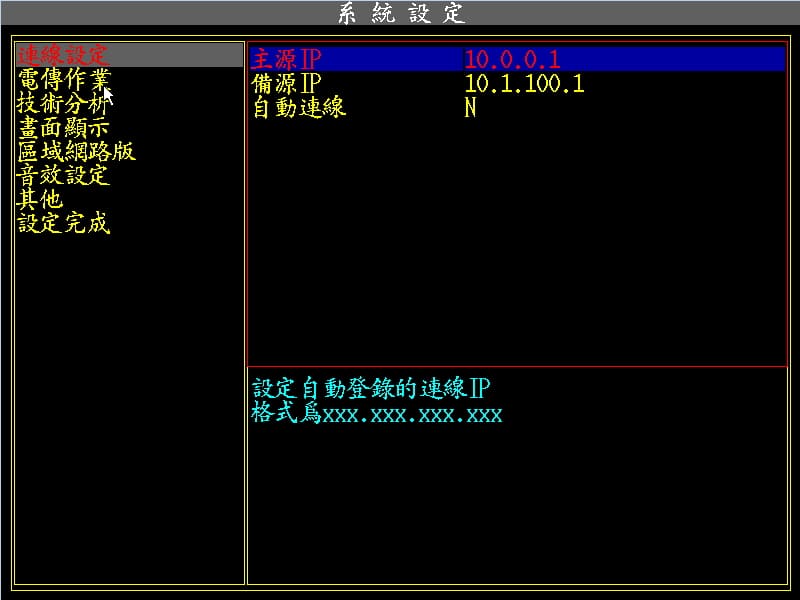 連線設定:可以設定連線主援 IP、備源 IP、開啟轟天雷是否自動登錄連線