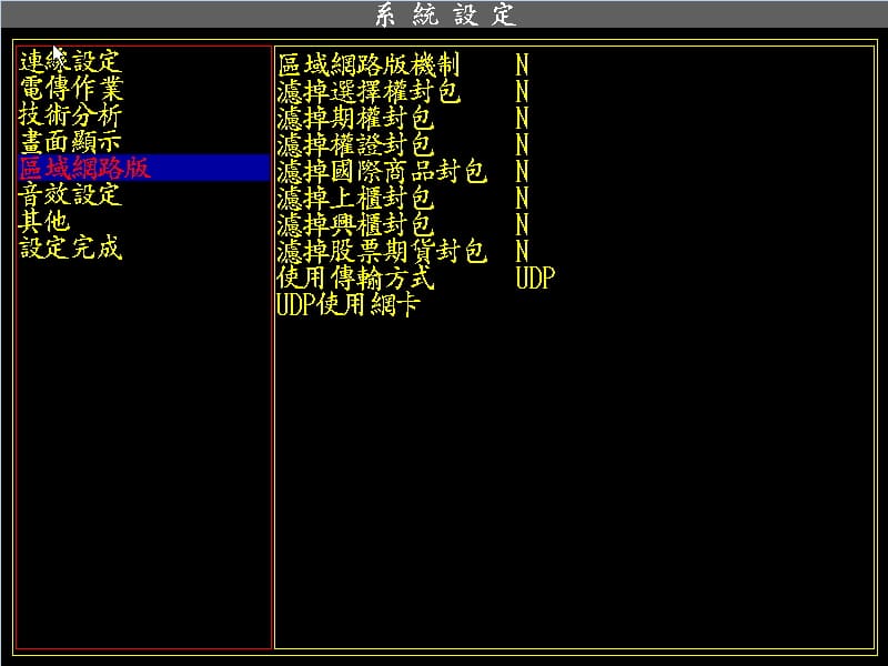 區域網路版:可以設定區域網路版功能,單機接收封包並且轉發封包,提供其他網路版 client 軟體接 收封包使用,本項目必須先取得網路版授權,並且由工程人員設定使用,一般單機客戶請勿更改任何 設定。
