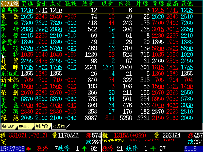 四、警示股 五、黃金操盤畫面 六、盤中即時價量提示
