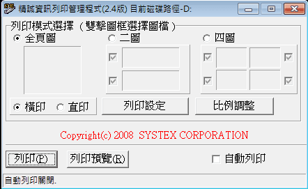 備註:如在"自動列印"處選擇 " 打勾 " 記號,只要在轟天雷系統內按   PrintScreen   鍵就會自動列印。